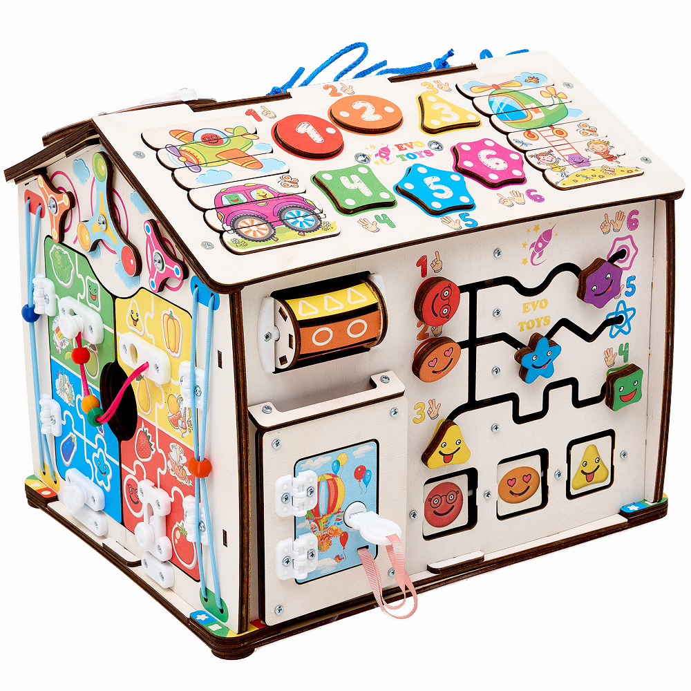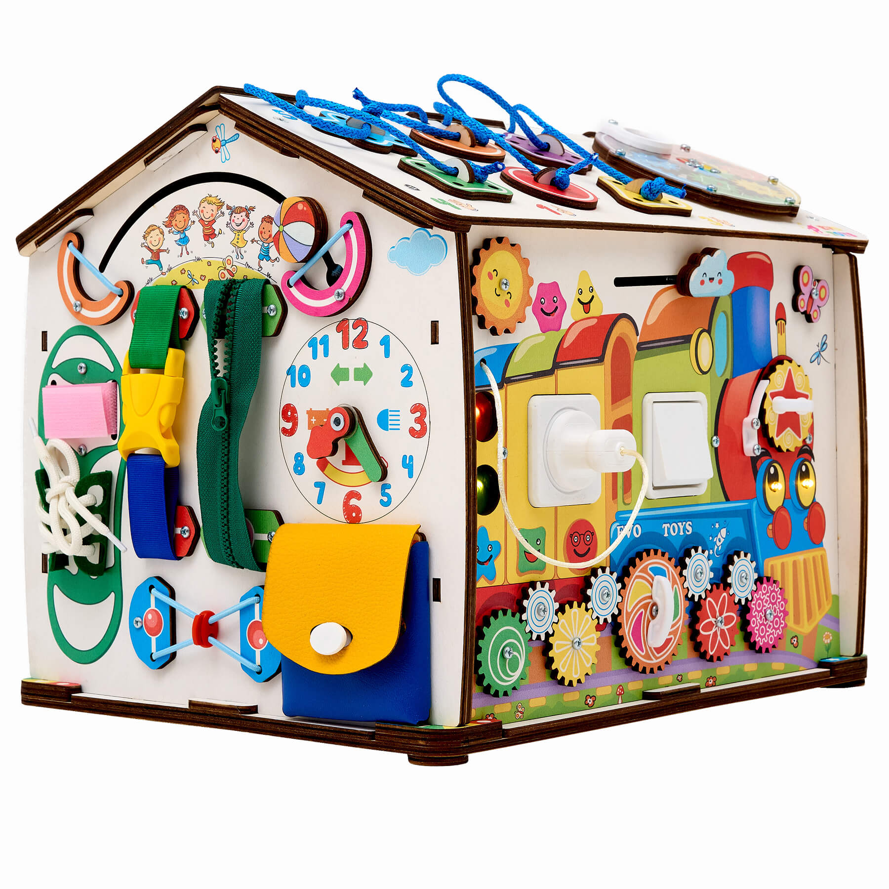 Бизиборд Домик Все в одном 30х30х45 см со светом